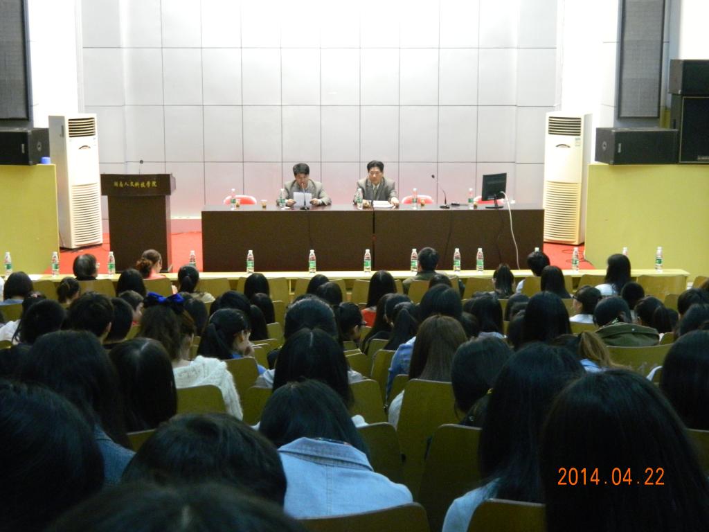 金教授主要从我国的金融改革、企业的投融资和财务管理、财务管理专业学生就业前景及如何作好自己的职业生涯规划四个方面具体介绍了金融市场体系、上海自贸区试点、试验区金融改革的框架、互联网金融、我国的金融改革对企业投融资和财务管理的影响、财务管理专业大学生要掌握的职业能力、职业生涯规划等。随后,金教授还与师生进行了互动,耐心细地回答了大家的问题,与此同时,国际教育发展联合会的企业代表介绍了他们的职业规划与从业经历。最后周副校长结合自己的经历做了总结讲话,鼓励学生认真学习,对同学们提出了殷切的期望。