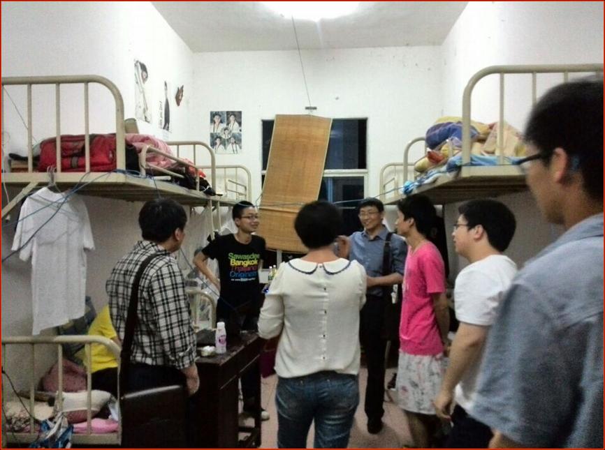 为了了解经管系毕业生的学习、就业等情况,加强领导老师与学生之间的沟通,经管系主任彭分文,党总支书记刘辛田,副书记刘红燃带头下寝,走访毕业生寝室。