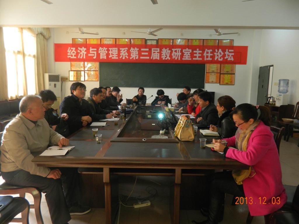 为了促进各专业实践教学体系的发展,探讨校企合作教育、实验室建设、课程教学体系构建等问题,我系于2013年12月3日下午在同德楼306会议室召开第三届教研室主任论坛。论坛由彭分文主任主持,经管系系领导、教研室主任参加了会议。教学督导团刘楚魁、彭逢澍教授,教务处领导刘超良、黎建辉等应邀出席了会议。