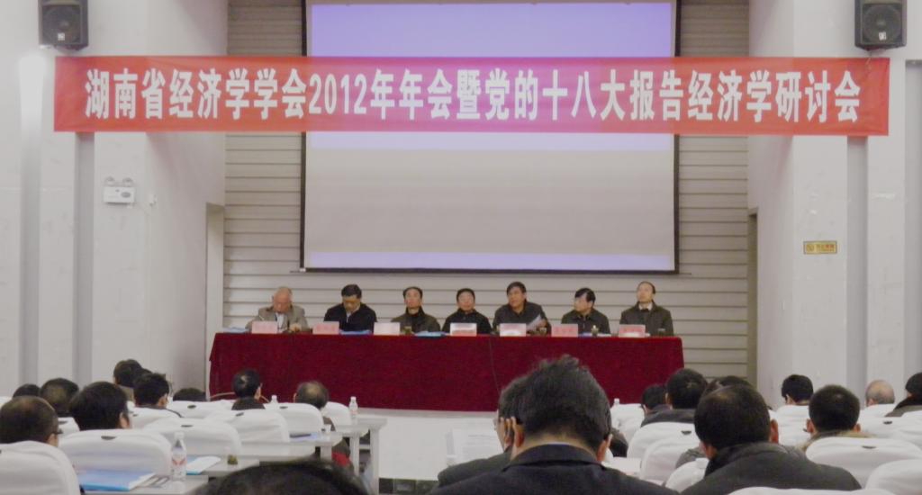 2012年12月26日上午,湖南省经济学学会2012年年会暨党的十八大报告经济学研讨会在湖南大学北校区图书馆报告厅隆重举行,我系王晓军副教授、刘加林博士参加了本次会议。
