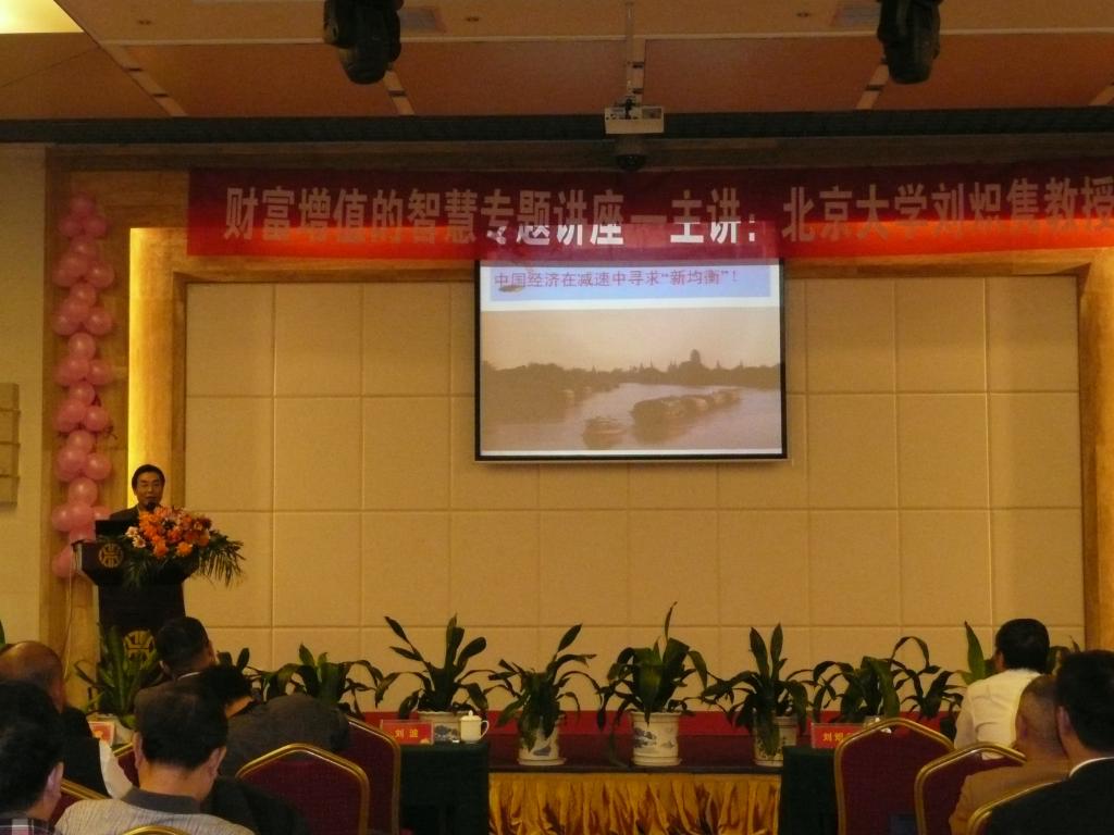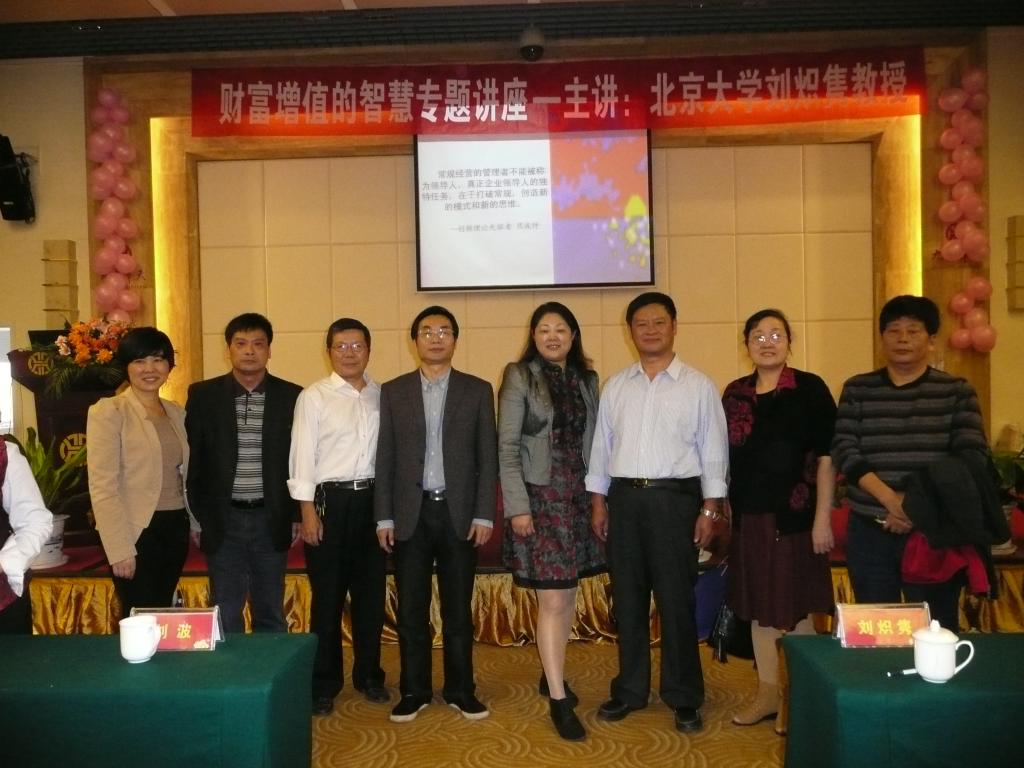10月19日上午,由娄底市企业家协会组织的学术报告会在华天酒店五楼会议室举行,北京大学企业商学院研究中心专家、中国管理科学研究院研究员刘炽隽教授在会上作了“当前经济发展趋势下财富增值的智慧”的专题讲座。刘炽隽教授结合当前形势和娄底实际,运用生动的语言、独到的视角和广博的知识为与会者上了一堂形势教育和创业教育课。我系系主任彭分文教授、副主任王晓军副教授及企业研究所所长彭晓辉教授等出席了会议,会议期间,和与会的领导、学者和企业界朋友进行了广泛的接触和交流。