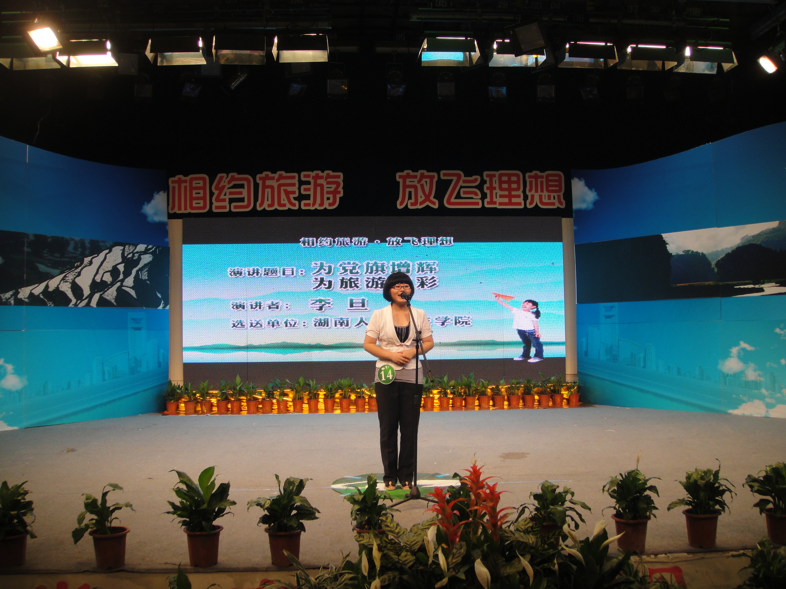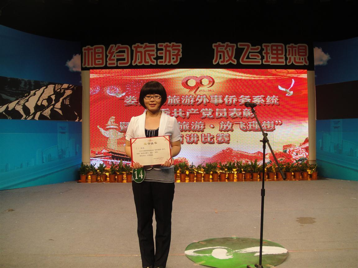在迎接建党九十周年来临之际,2011年6月28日上午8:30,由娄底市旅游外事侨务局承办的“相约旅游、放飞理想”演讲比赛决赛在娄底市广电局演播厅隆重举行,我系代表李旦同学在比赛中表现突出,取得第四名的优异成绩,荣获三等奖。