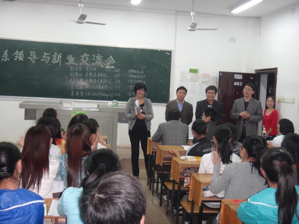 2011年9月22日晚8时,经济与管理科学系领导与新生见面会在各专业举行,出席本次见面会的领导有系主任彭分文老师,系党总支书记刘辛田老师,系党总支副书记刘红燃老师,系副主任王志和老师以及各教研室主任和各学生党支部书记。