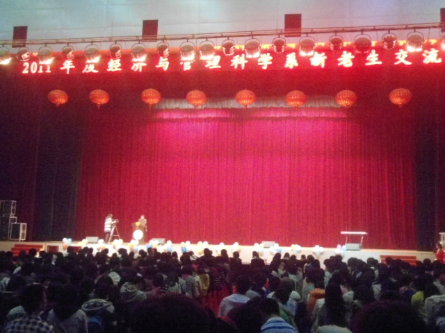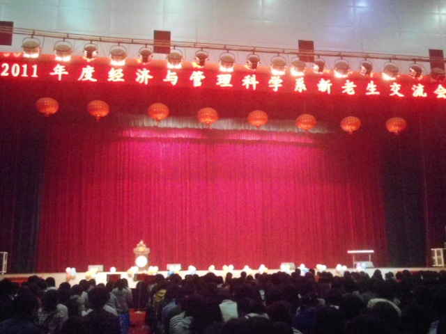 10月23日晚,经管系新老生交流会在体育馆成功举行,系领导全部出席了本次交流会。新老生交流会在《我的未来不是梦》的悠扬旋律中拉开帷幕,系主任彭分文、系副主任王志和做了重要讲话,表达了对新生到来的欢迎以及对于学生的发展提出了良好的建议。在由11级新生自编自导的舞蹈《Hara Tuku Girls》火辣上演之后,优秀学生代表荣恺兮和王之阳各自上台发言,传授自己工作和学习的心得,同学们收获颇丰。新老生有奖互答活动将气氛推向了高潮。经管系副书记刘红燃书记对本次交流会进行了总结并向同学们重申了学校的规章制度,同时告诉同学们要严格要求自己,努力学习。最后交流会在歌曲《明天会更好》中落下帷幕。