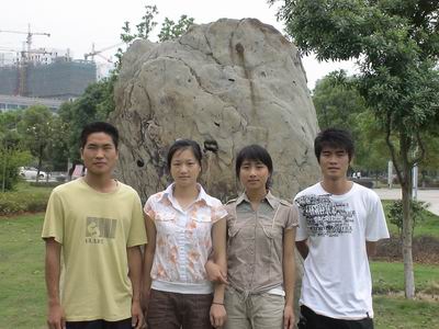 自左起:戴晓,经济管理专业06级2班学生,获得男子100米栏冠军;谢娟娟,电子商务专业07级1班学生,获得女子800米冠军;肖艳,人力资源管理专业06级2班学生,获得女子1500米、女子5000米冠军;颜亮,人力资源管理07级1班学生,获得男子400米、男子800米冠军。
