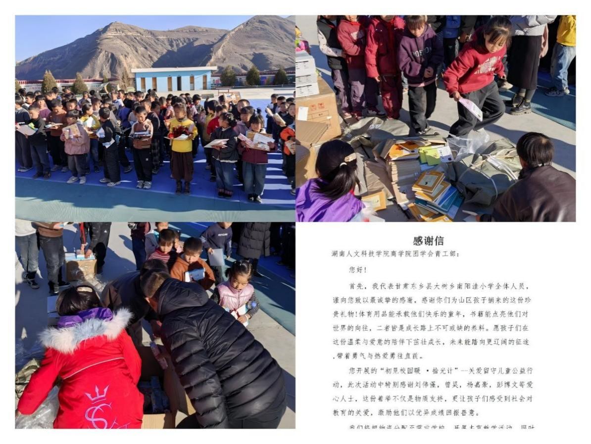 10月25日至11月19日,所有在活动中征集的物资被统一送至留守儿童手中,精准回应他们在学习资源、体育用品及心理陪伴等方面的实际需要。甘肃东乡县大树乡南阳洼小学的老师反馈,这些物资不仅改善了孩子们的日常学习条件,更让他们感受到来自远方高校师生的牵挂与鼓励。
