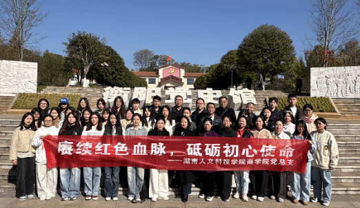 为深入学习贯彻习近平新时代中国特色社会主义思想,纪念中国人民抗日战争暨世界反法西斯战争胜利80周年,强化爱国主义教育,11月29日至30日,商学院党总支组织师生党员、发展对象和入党积极分子,邀请民主党派和无党派人士前往历史文化名城衡阳,开展为期两天的“赓续红色血脉,砥砺初心使命”主题党日活动。