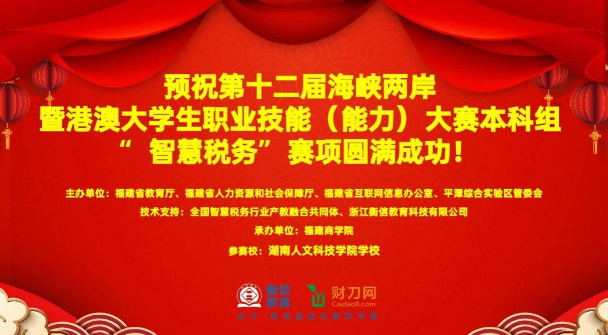 12月27日,第十二届海峡两岸暨港澳大学生职业能力智慧税务大赛圆满落幕。大赛紧密围绕“智慧税务”发展前沿,聚焦金税系统实操、全电发票开具、个人所得税申报合规等真实业务场景,设置多模块实操环节,全面考察选手的税收政策运用能力与信息化系统操作水平,吸引了来自海峡两岸及港澳数十所高校的队伍同台竞技。