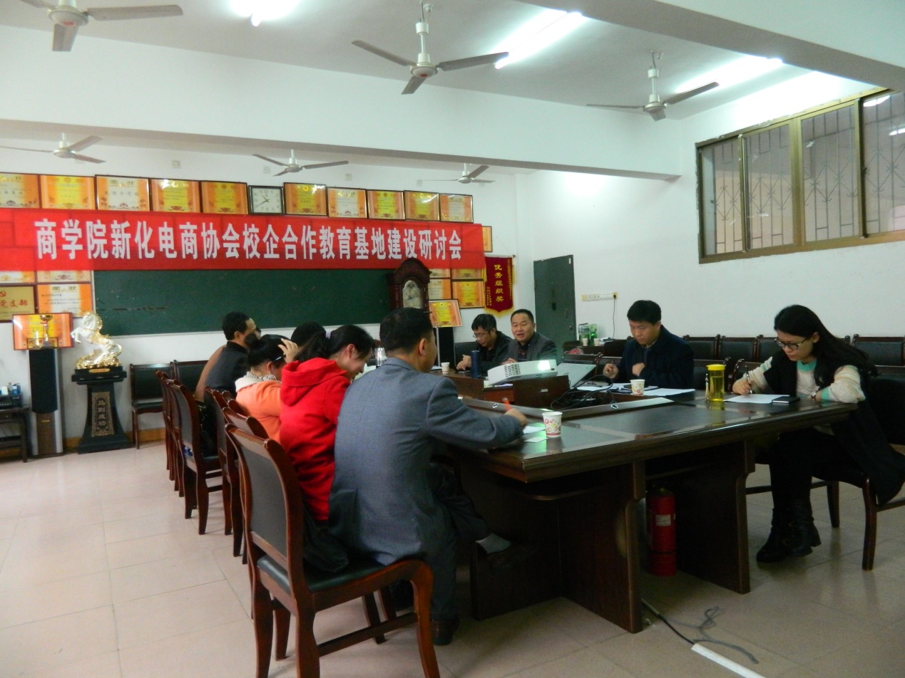 3月22日,商学院、新化电子商务协会校企合作教育基地建设研讨会在同德楼306会议室举行,共商44118太阳成城集团商学院与新化电子商务协会校企合作基地建设大计。与会人员包括新化电子商务协会会长刘应知、新化商务局副局长周玉雄、新化邮政分公司总经理周辉等8人,娄底市科技局农村与社会发展科技科科长欧阳建安,及44118太阳成城集团商学院院长周强、书记刘辛田、副院长王志和和电子商务专业部分教师。研讨会由王志和副院长主持,朱强院长代表商学院的师生对大家的光临表示热烈的欢迎,同时感谢娄底市科技局牵线搭桥促成了此次合作,祝愿合作取得圆满成功。