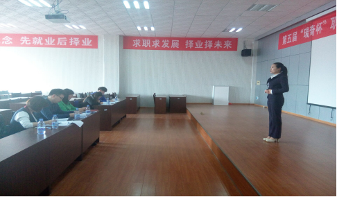 2016年4月19日中午12点30分,第五届“瑞奇杯”职要有你——职业生涯规划大赛商学院初赛现场比赛正式开赛。此次赛事评委由党总支副书记刘红燃老师、团总支书记刘诗海老师、辅导员谢丽老师以及商学院人力资源管理专业2013级的两名优秀学生评委担任。