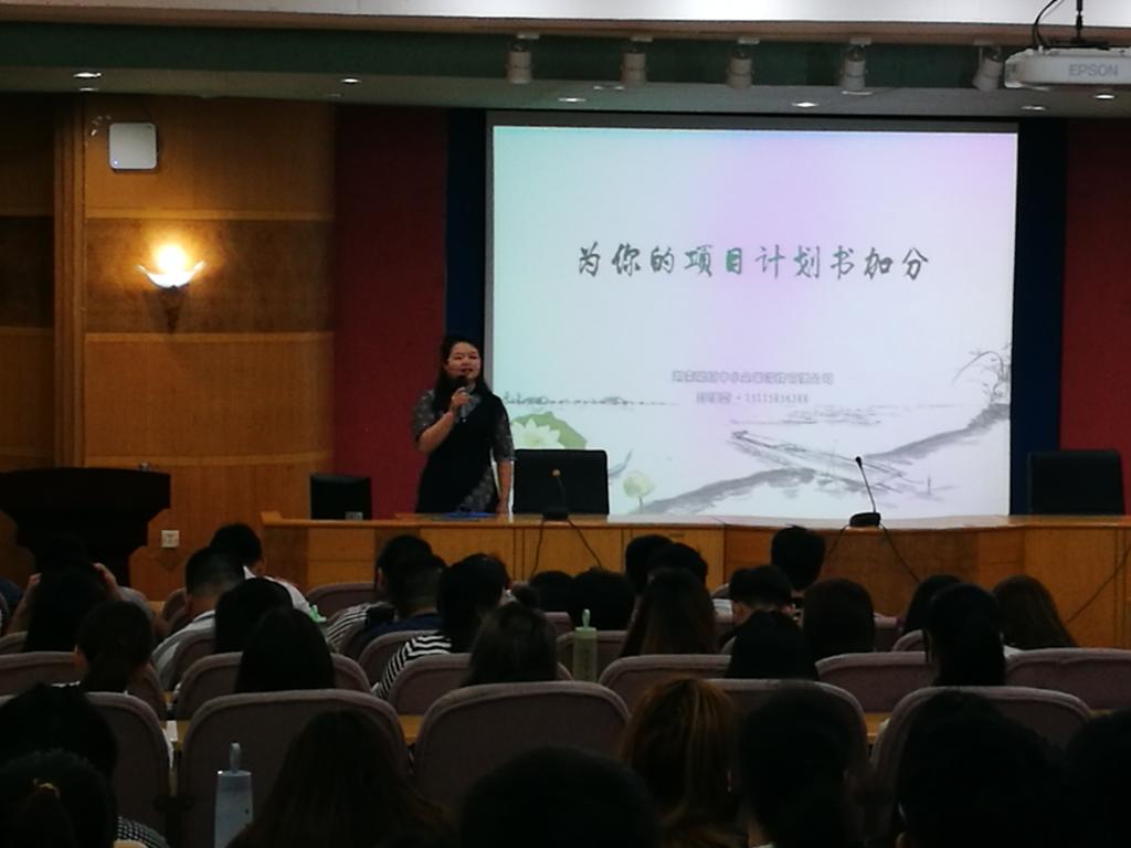 彭祖菊女士从自身教育经历出发,联系企业生产实际,为同学们精彩的讲述了撰写商业计划书的技巧,随后引用实际案例具体的分析撰写商业计划书的步骤,最后总结了撰写商业计划书的经验并分享给同学们。现场同学们认真聆听,积极互动,提出了很多撰写商业计划书的相关问题,彭女士一一予以解答,赢得了现场一阵阵掌声。
