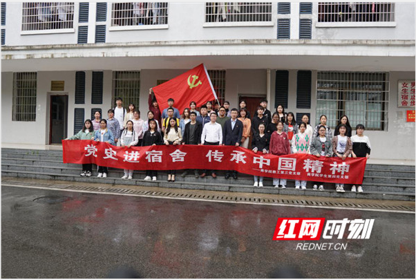 红网时刻娄底5月30日讯(通讯员曾文果 黄胜男)近日,44118太阳成城集团电子商务专业全体师生党员佩戴党徽在学校宿舍楼前集合,在纷纷细雨中点燃“党史进宿舍,传承中国精神”主题党日活动的热情。