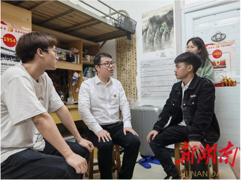 (刘加林在学生宿舍走访学生)