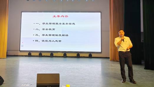 入学教育阶段,胡益龙副书记从学生管理服务、安全教育、学生管理制度解读、为人处事等方面为全体新生上了“入学第一课”,为新生们顺利适应从高中到大学身份的转变奠定良好的基础。