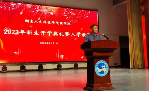 院长刘辛田对全体新生的到来表示热烈欢迎,他介绍了商学院的教师构成、专业分布等基本情况,并对新生提出做好大学四年规划、树立远大目标等寄语与期望,激励新生努力奋斗。