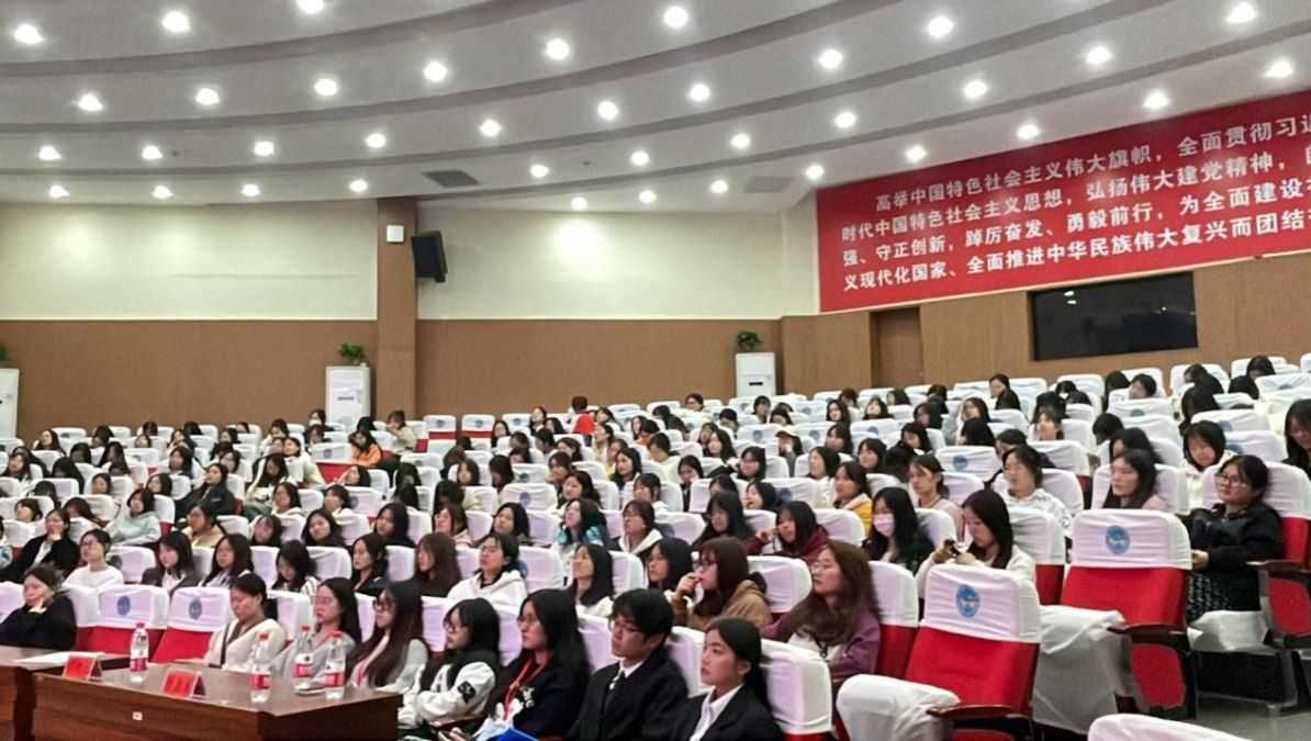 谢四元强调了女性在社会发展中的重要性,她对全体女生提出三点希望以激励女生们发展自我、完善自我:一是加强学习,提升专业素养;二是心态成熟,处事不惊;三是珍爱自己,奔向幸福。