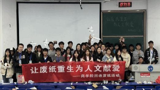 随着环保意识的日益增强,越来越多的人开始关注资源的循环利用。3月25日晚,商学院团学会于致远楼119举办以“让废纸重生,为人文献爱”为主题的“变废为宝”活动。团学会部分学生干部以及2023级各班级代表参加活动。