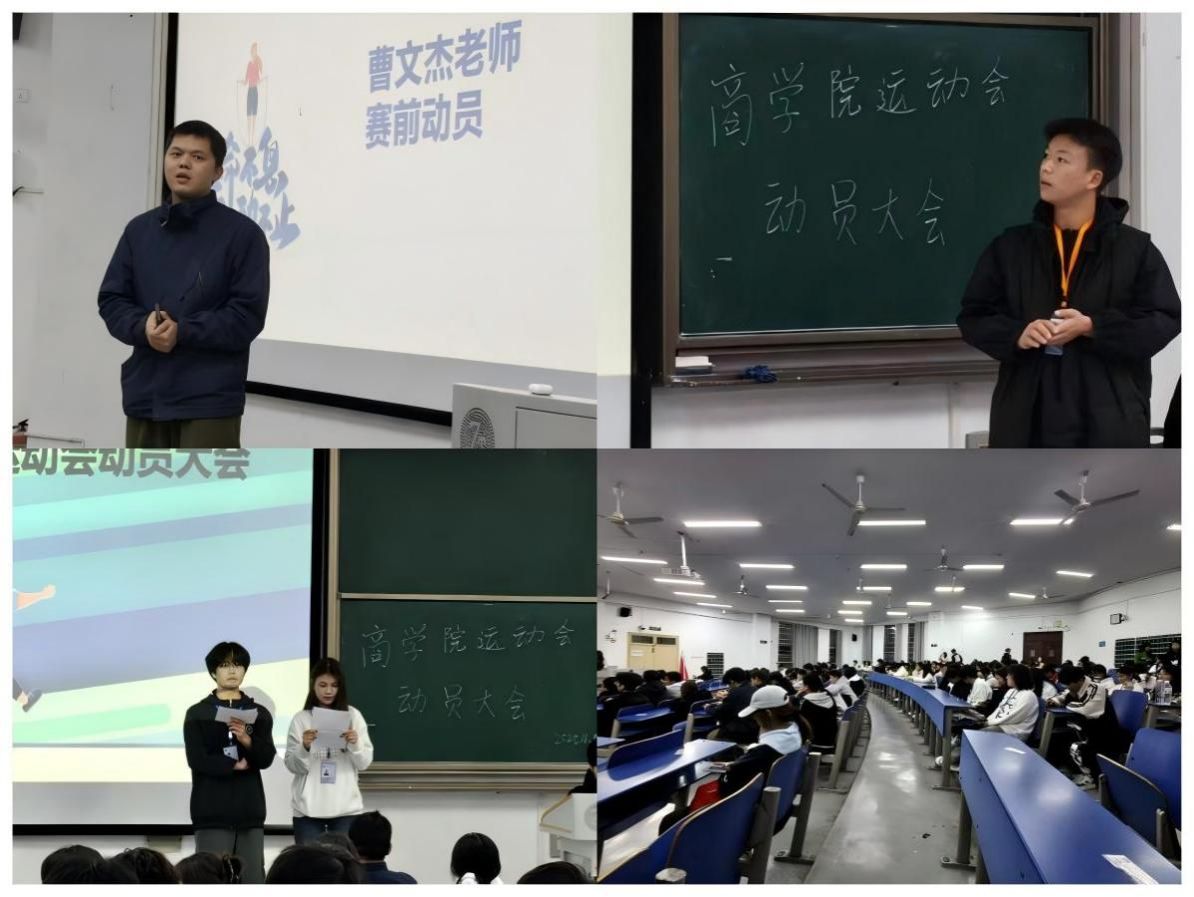 为鼓舞运动员士气,凝聚学院力量,商学院于11月11日晚在致远楼209教室举行了2025年第十九届田径运动会动员大会。学院辅导员曹文杰、参赛运动员、团学会学生干部代表以及各班级学生代表共同参加动员大会,迎接这场属于拼搏与荣耀的盛会。