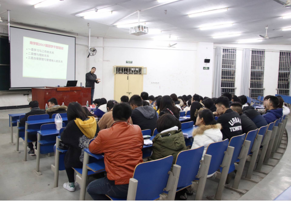 11月20日晚7点,商学院于致远楼219教室举行2017届团学干部培训结业典礼。与会人员有胡益龙副书记,辅导员老师,学生会主席团,团支部副书记以及17届团总支、学生会全体干部。