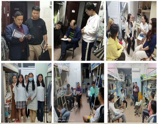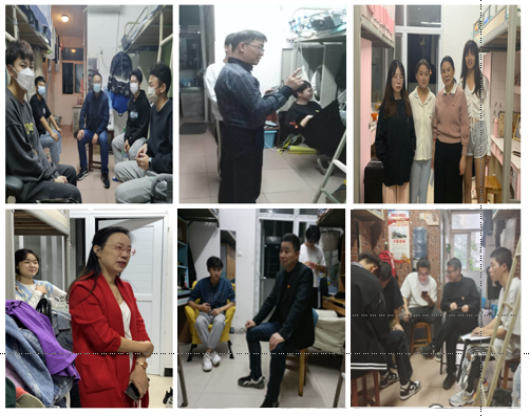 2022年11月2日晚,党委委员、副校长朱强,人事处、科研与社会服务处、信息中心领导与商学院全体院领导深入2021级学生寝室开展“三联系”工作。