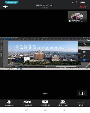 会议分为两个部分,第一个部分是由贺晓理先生介绍就疫情下酒店的变化及发展趋势,201720182019级学生参与。以太平洋酒店为例,通过顾客满意度(高达4.9分的高分。5分制)的数据分析,重点介绍太平洋酒店基于客户体验坚持高品质发展策略。希望学生能扎实学好基础理论知识,并在此基础上,通过实训和实习,提升专业技能,助推旅游业的发展。