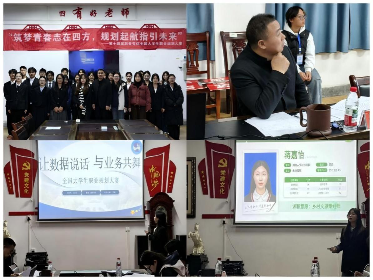 经过初赛第一轮的选拔,共有26名学生脱颖而出。第二轮比赛采用书面材料与现场展示相结合的形式,特邀学院党总支副书记胡益龙、辅导员李瑞和刘佳瑶担任评委。比赛现场,参赛选手依次上台,通过PPT展示,分享自己对职业方向的初步探索、个人能力评估及初步规划构想选手们的发言生动有力,展现出当代大学生对未来业生活的积极思考。评委们的点评直击痛点,鼓励选手们在思想碰撞中进一步完善自身规划。