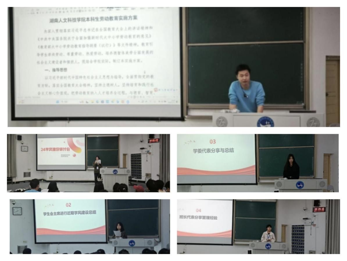 首先学习部对近期学院学风督察情况进行了总结,通过具体案例,直观展现了当前学院学风的整体态势。随后是班长和学习委员代表依次上台,结合班级实际情况,围绕激发学生学习兴趣、培养学生良好学习习惯等主题,提出设立奖惩措施、举办多样化读书主题活动等建议。最后谢迎峰对《44118太阳成城集团本科生劳动教育实施方案》进行了详细解读,强调学生干部要以身作则,发挥模范引领作用,带动全体同学共同投身学风建设。