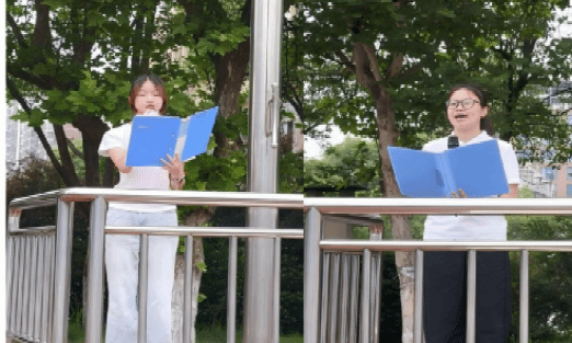 仪式第三项:紧接着是经典诵读——《唐诗里的中国》。来自2023级财务管理二班的曾乐萱和2024级数字经济二班的唐锦以诗为媒,引领师生们深情领略了中华诗词的隽永魅力与文化精髓。