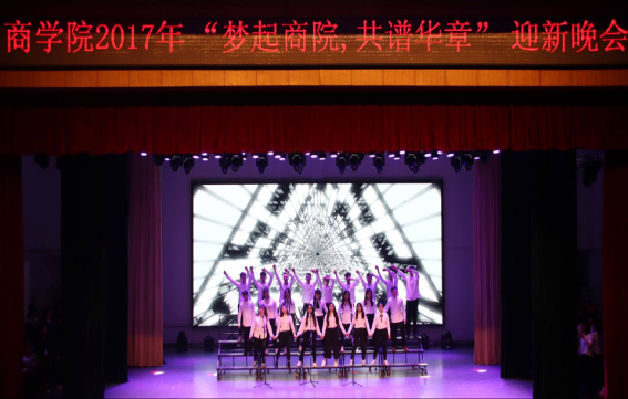 12月28日晚,商学院在逸夫楼音乐厅举行了“梦起商院•共谱华章”迎新晚会。商学院全体领导、老师、团学干部和17级新生参加了晚会。学校学生会和各学院学生会部分干部应邀参加了晚会。