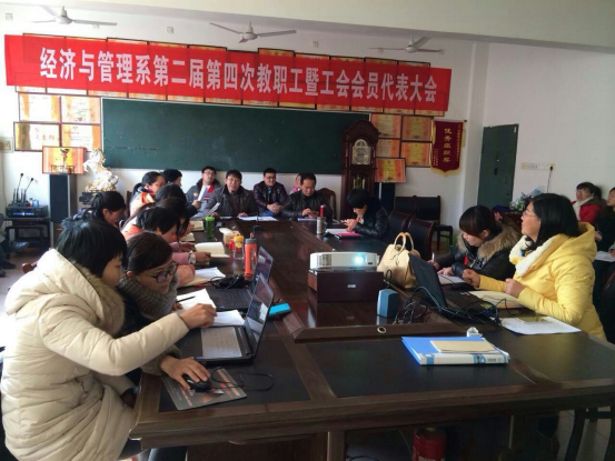 2016年1月24日下午,经济与管理系第二届四次"两代会"在同德楼306会议室隆重召开。经济与管理系党政领导班子成员及全体教师参加了大会。