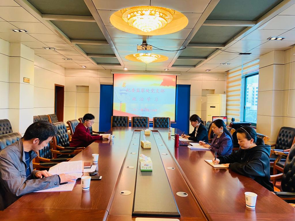 330日下午,纪委监察处党支部全体党员在明德楼第一会议室开展“学史明理”专题政治学习,党委委员、纪委书记凌艳平以普通党员身份参加学习,会议由党支部书记江彤主持。