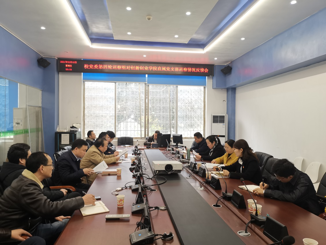 根据学校党委统一安排,第四轮校内巡察于2020年10月27日开始对创新创业学院直属党支部、校地校企合作处党支部开展常规巡察。2021年3月12日学校分别召开了巡察反馈会议,校纪委书记凌艳平、副校长曹鑫,巡察组组长刘纲华、副组长胡益龙、巡察组、巡察办有关人员和被巡察党支部的所有人员参加会议。会议由被巡察单位党支部书记主持。