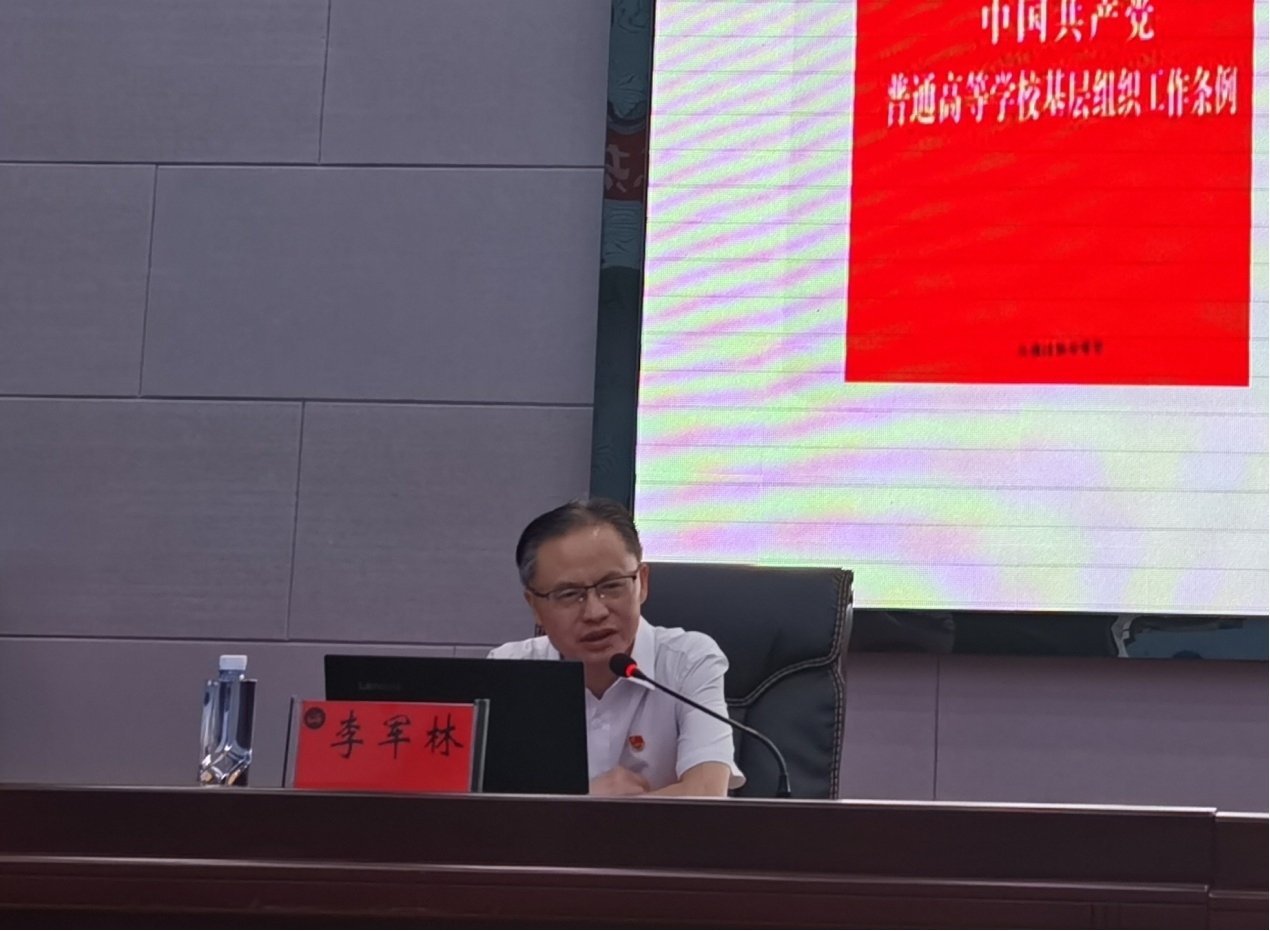 6月21日下午,机关党委为机关120余名党员组织了一堂党课,党委副书记李军林以学习贯彻《中国共产党普通高等学校基层组织工作条例》为题,做了专题辅导。