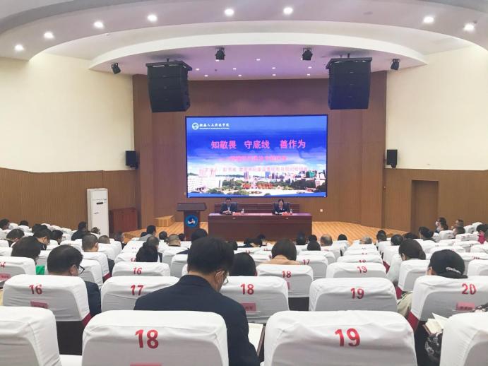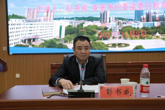 为进一步推动师德师风建设,引导广大教师以德立身、以德立学、以德施教、以德育德,11月2日下午,太阳成官网邀请娄底市教育局党组成员、市纪委监委驻教育局纪检监察组组长彭书威来校作师德师风建设专题讲座。全体在家校领导、相关职能部门负责人及二级学院副科以上实职干部共160余人参加学习,纪委书记凌艳平主持讲座。