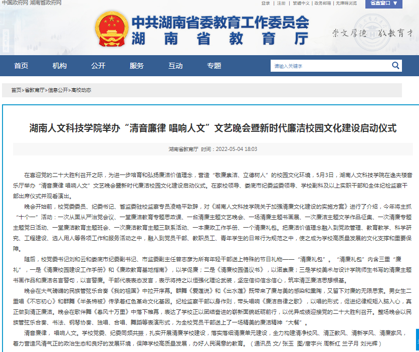 湖南省教育厅网---湖南44118太阳成城集团举办“清音廉律 唱响人文”文艺晚会暨新时代廉洁校园文化建设启动仪式