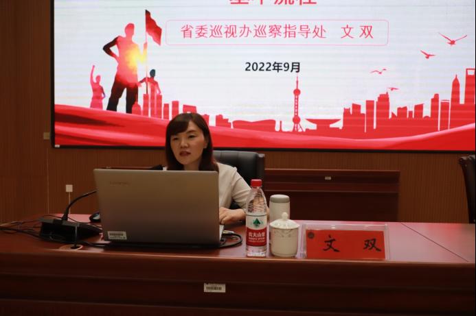 9月8日下午,太阳成官网特邀省委巡视办巡察工作指导处副处长文双同志来校作巡察工作专题辅导报告。校巡察领导小组成员、校纪委委员、第六轮巡察、审计组全体成员、校巡察库相关人员以及巡察办和纪委监察专员办公室全体人员听取了报告。报告会由校党委副书记李军林主持。