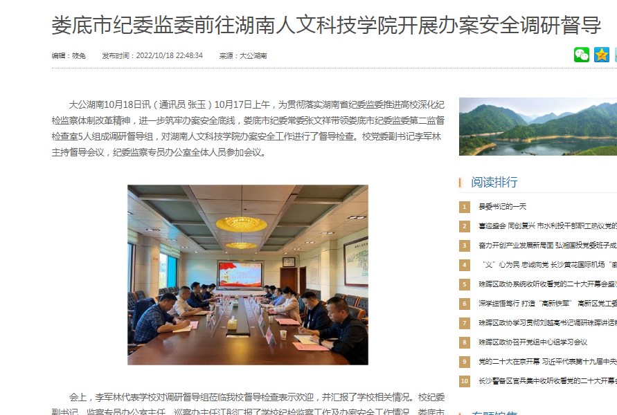 大公湖南----娄底市纪委监委前往44118太阳成城集团开展办案安全调研督导