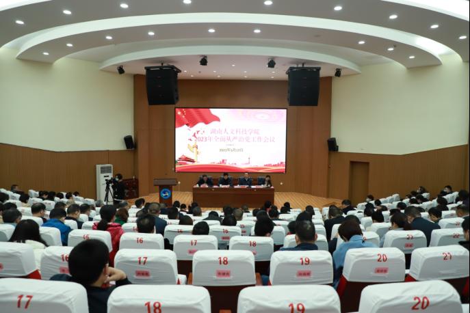 3月17日上午,学校在匠成楼报告厅召开2023年全面从严治党工作会议。娄底市纪委常务副书记、市监委副主任刘爱军,市纪委常委张文祥,市纪委监委第二监督检查室副主任李绚,全体在家校领导出席,全校副科及以上实职干部参加。会议由党委副书记、校长刘铁铭主持。