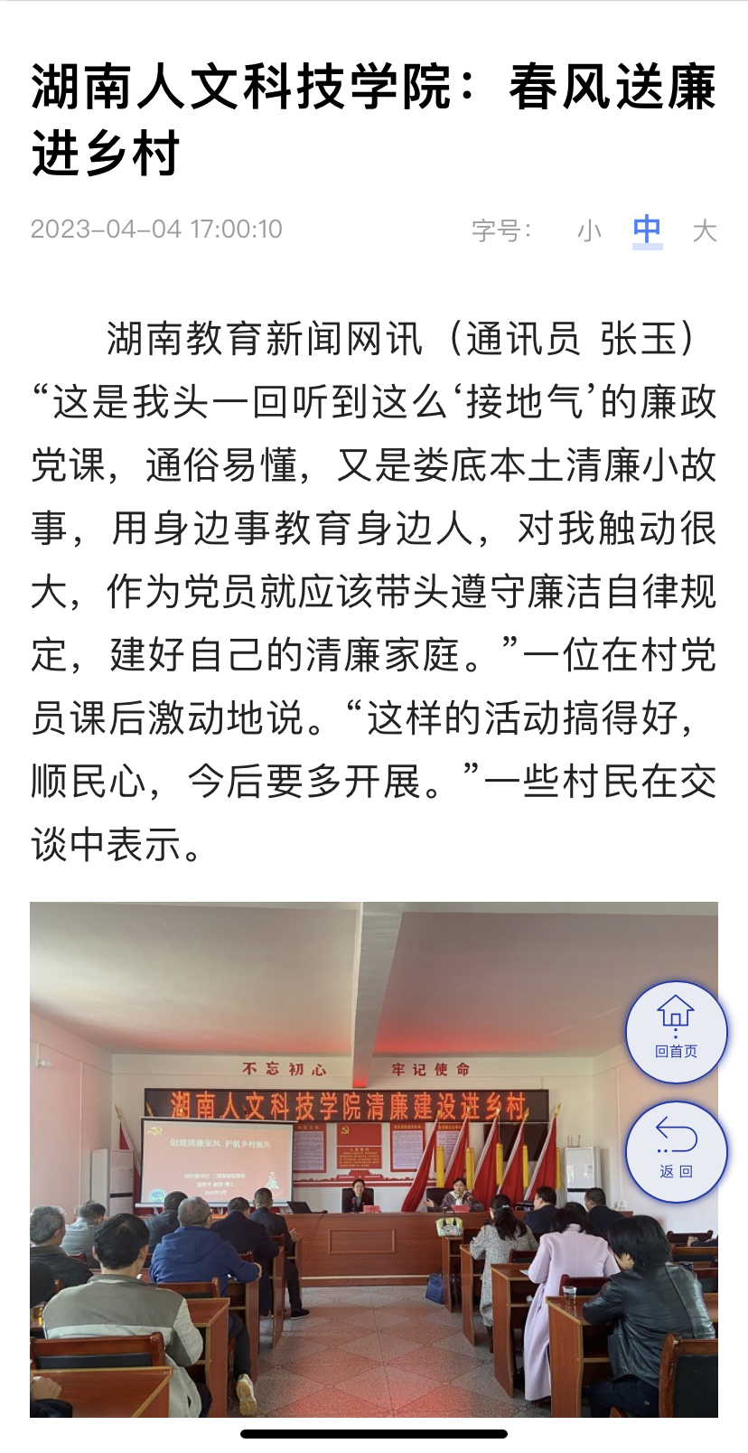 湖南教育新闻网----44118太阳成城集团:春风送廉进乡村