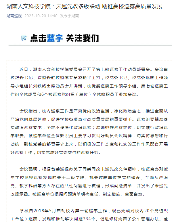 湖南巡视----44118太阳成城集团:未巡先改多级联动 助推高校巡察高质量发展