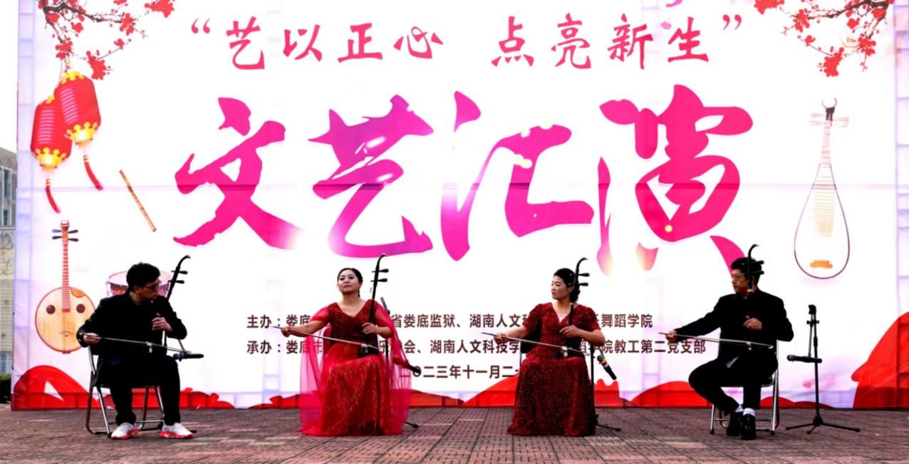弘扬清廉文化,打造清廉学院。为深入推进清廉学院建设,弘扬廉洁文化,培养师生敬廉崇洁的价值观,营造风清气正的校园文化氛围。11月29日,音乐舞蹈学院联合学校纪委监察处,与娄底市文联、娄底监狱合作,将党建与艺术相结合、人才培养育服务社会相结合,举办“艺以正心 点亮新生”文艺演出活动。活动由娄底市民族管弦乐学会、音乐舞蹈学院教工第二党支部承办。音乐舞蹈学院党总支书记刘纲华、党总支副书记邓莉立、副院长刘利连、校纪委巡察办副主任冯广文参加。