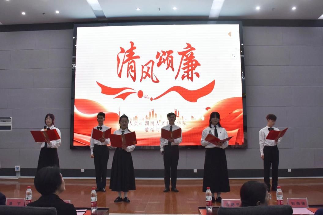 活动现场,数学与金融学院学生代表宣读了《清廉金融文化建设倡议书》,并献上《清风颂廉》朗诵表演。领导们向学生代表和银行保险机构代表赠送了《习近平与大学生朋友们》和《清廉金融文化读本》。中国银行娄底分行纪委书记韩强为在坐高校学子和银行保险机构从业人员开展了题为《廉洁从业第一课》清廉金融文化专题讲座。