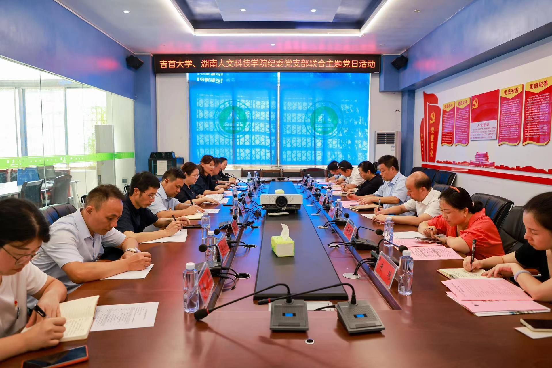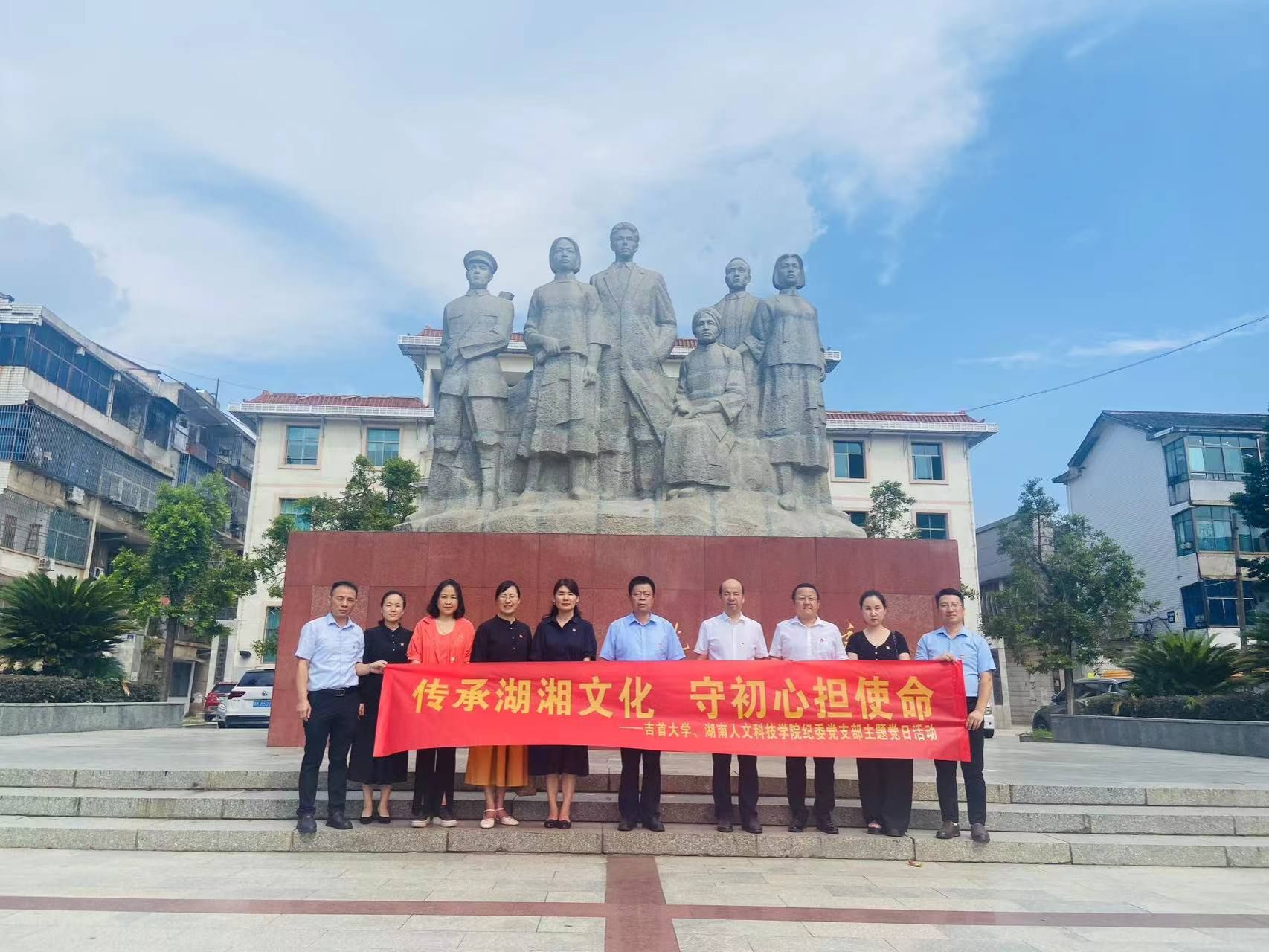 9月11日,吉首大学党委委员、纪委书记、省监委驻校监察专员刘启定带队来太阳成官网考察交流纪检监察工作,联合开展“传承湖湘文化,守初心担使命”主题党日活动。学校党委委员、纪委书记、省监委驻校监察专员凌艳平主持会议,两校纪委、监察专员办负责人、校纪委委员代表和学院负责人代表及纪检监察干部参加会议。
