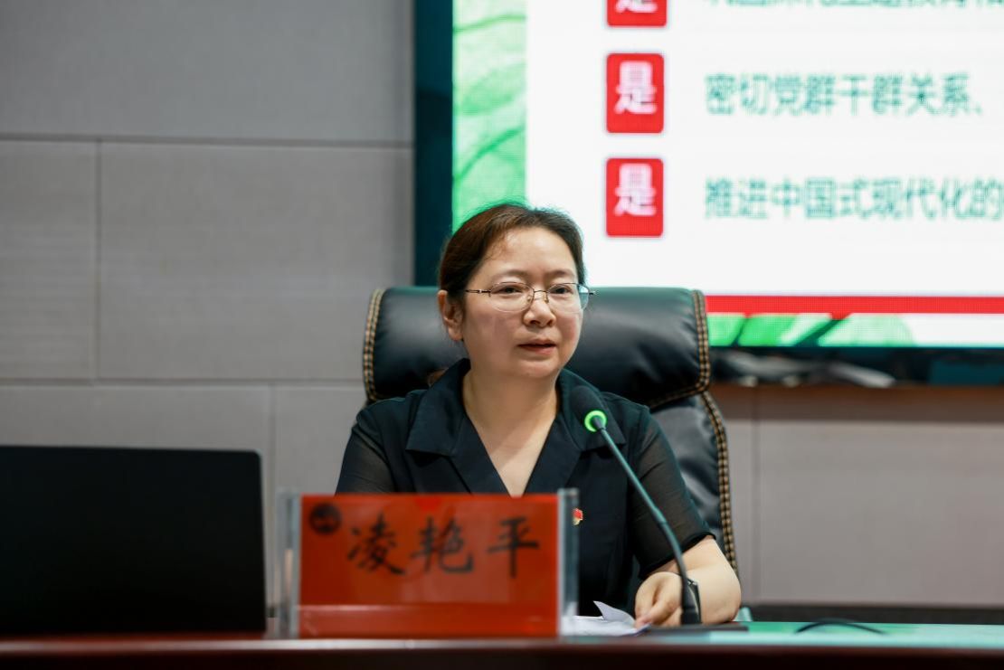 凌艳平指出,全体党员要准确理解开展深入贯彻中央八项规定精神学习教育的重大意义,深入学习领会习近平总书记关于党的建设的重要思想、关于党的自我革命的重要思想、关于加强党的作风建设的重要论述。她重点梳理了中央八项规定自2012年制定以来经历的重要节点,对中央八项规定及中央八项规定精神作了详细解读,带领全体党员深刻领悟中央八项规定及其实施细则精神的内涵实质,结合违反中央八项规定精神典型案例以案示警,要求全体师生党员率先垂范,筑牢廉洁自律的思想防线,推动作风建设常态化。