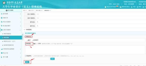 4.批注完成后,教师可给出给出审核状态及审核意见后“提交”。