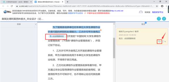 5.点击对话框即可给导师回复,实现在线沟通。与导师互动后如需修改论文,学生可重复步骤1-4,重新提交修改后的论文,实现学生与老师之间反复修改批阅的过程。