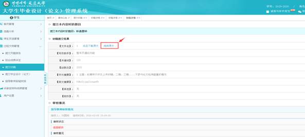 1.进入过程文档管理,点击提交初稿,点击上传初稿。
