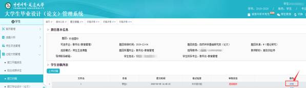 3.学生提交后老师可对提交的论文进行线上批注修改,退回修改后学生可点击“详情”。