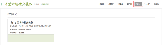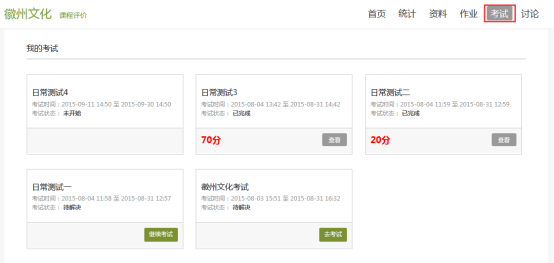在课程空间内,点击导航栏的考试,进入考试界面,如图所示
