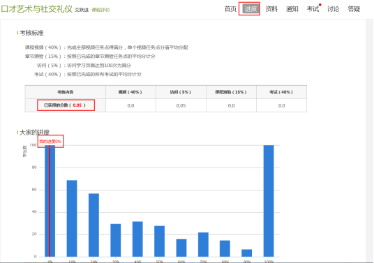 C、 点击学习空间的课程,即可进入每门课程的学习空间。如图下所示:学习空间界面可显示学习进度和未完成任务点数。